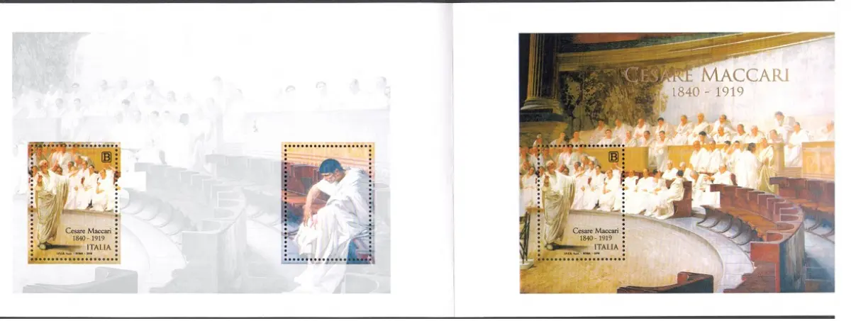 2019 Italien - Republik, Blatt Cesare Maccari 1840-1940, UNNUMMERIERT, ZENTRAL GEFALTET POSTFRISCH ** Dieses Blatt stammt aus dem Ordner, in den es in eine Tasche gesteckt wurde, daher mittig gefaltet, aber nicht mittig versehen und nicht beschädigt.