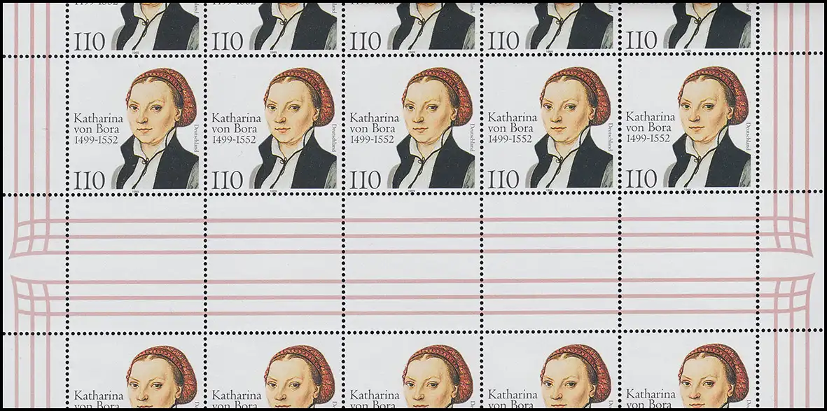 2029 von Bora, Kleinbogen mit 5 Leerfeldern, verschnitten, postfrisch **