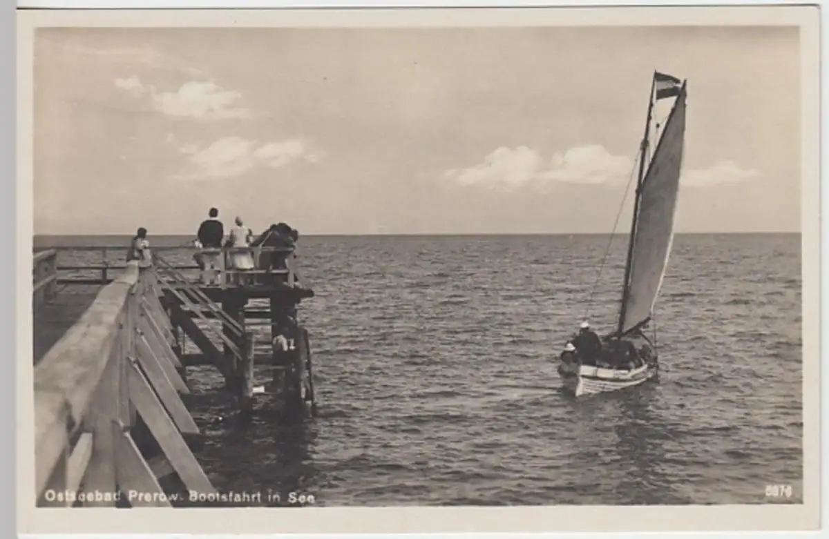 - (20967) Foto Ansichtskarte, postcard, PPC - Prerow, Seebrücke, Segelboot 1929