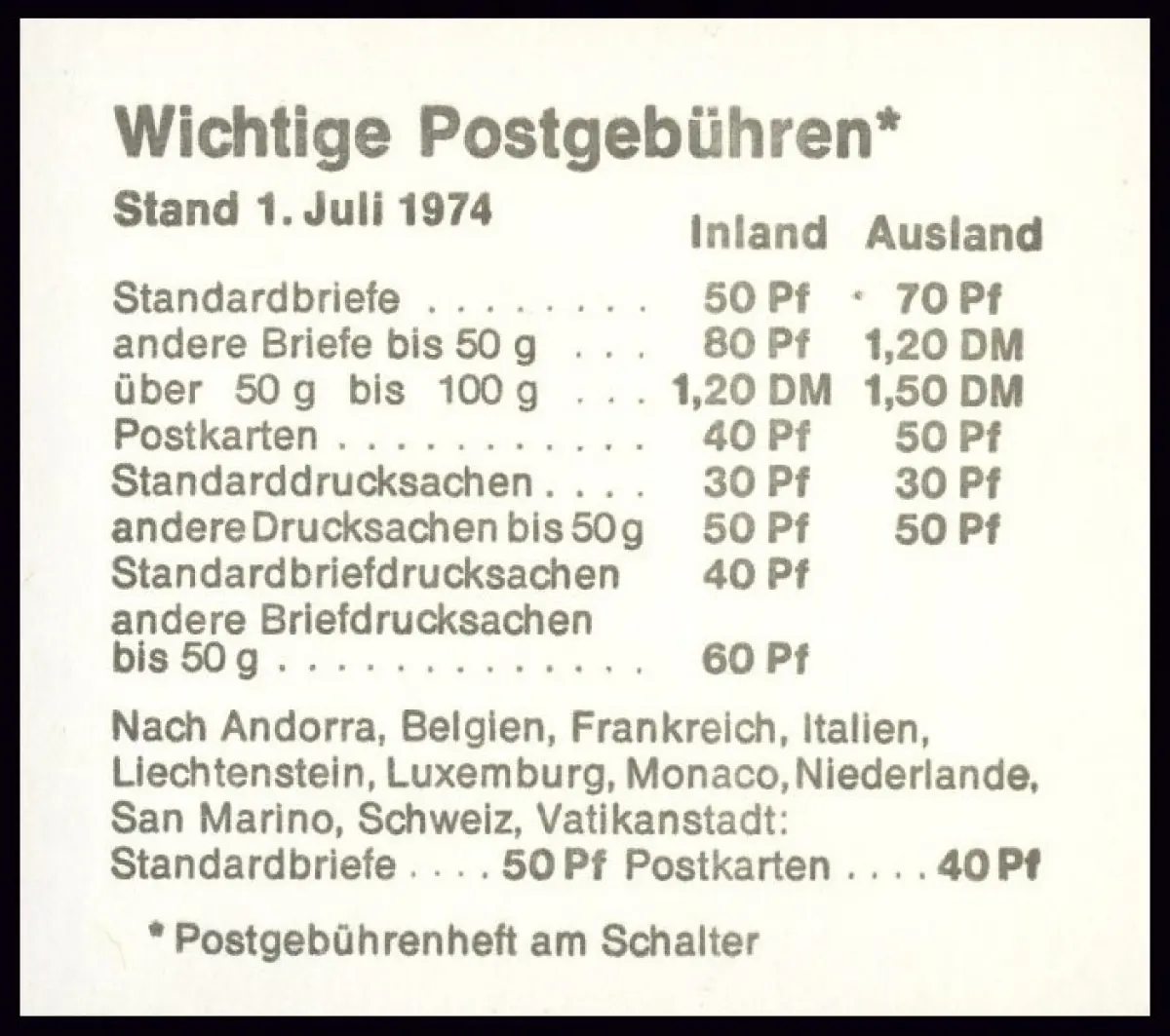 Postgebühren, Markierungsstriche violett, 4.DS mit Type a: 1 über h von- fach