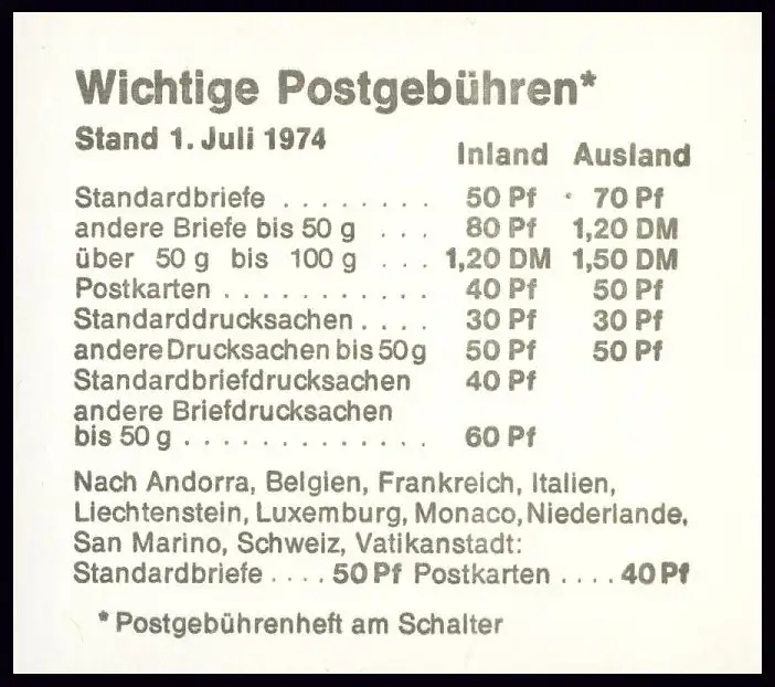 Postgebühren, Markierungsstriche braun, 4.DS mit Type a: 1 über h von- fach