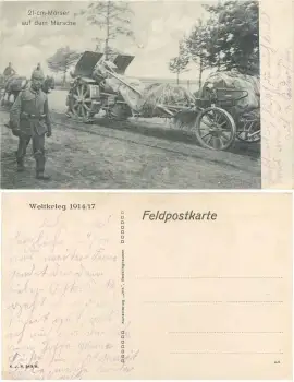 21 cm Mörser auf dem Marsche Deutsches Heer AK um 1917