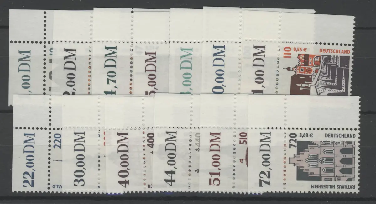 2139 ff SWK 13 Werte mit Doppelwährung komplett, Ecken oben rechts **