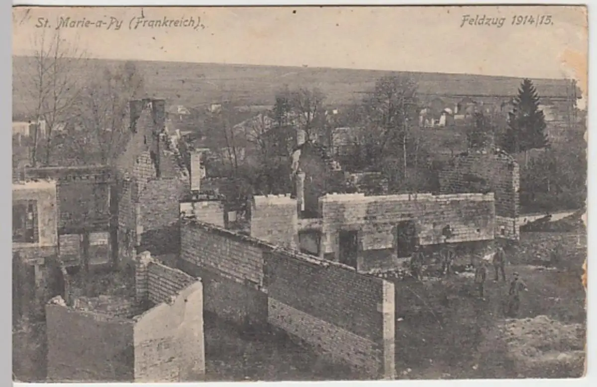 - (21752) Ansichtskarte, postcard, PPC - Sainte-Marie-a-Py, zerstörter Ort, Feldpost 1915