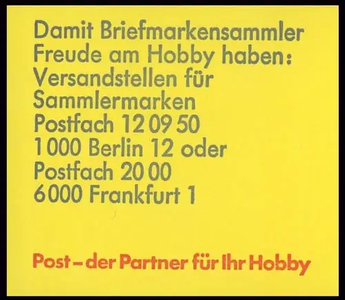 Ein Angebot in Briefmarken BRD Markenheftchen - 4.734 weitere Angebote in dieser Kategorie