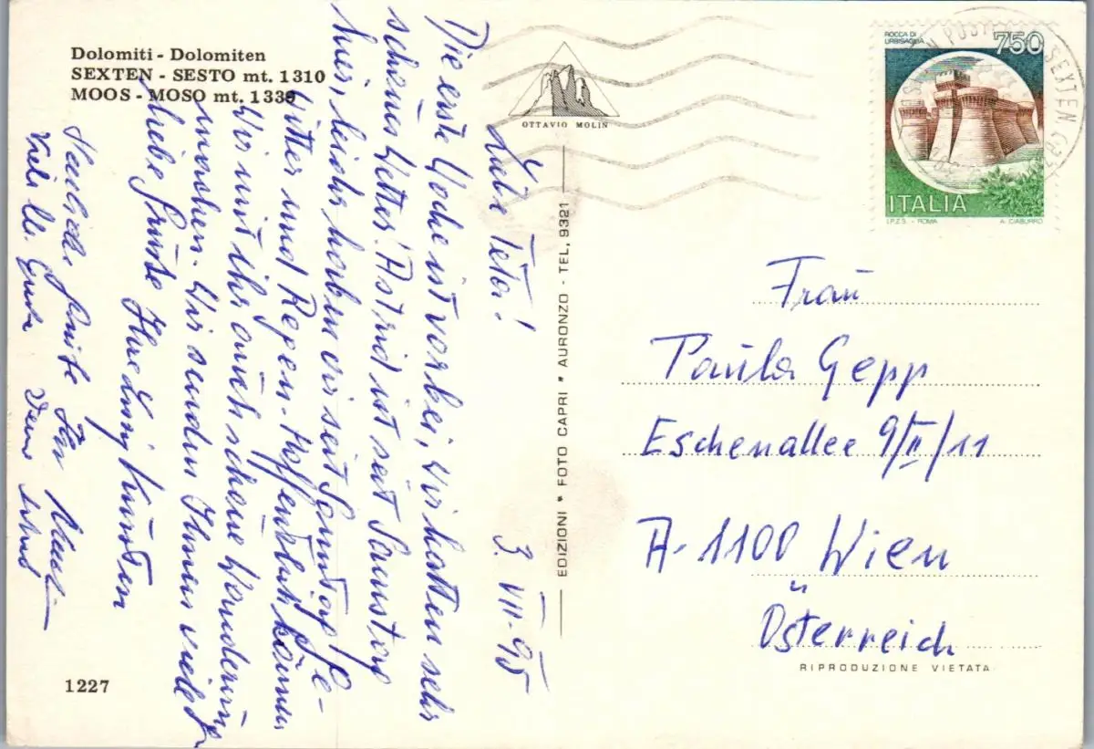 22266 - Italien - Sexten , Sesto , Moos , Moso - gelaufen 1995