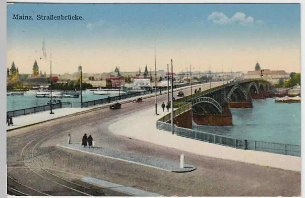 - (22406) Ansichtskarte, postcard, PPC - Mainz, Straßenbrücke 1937