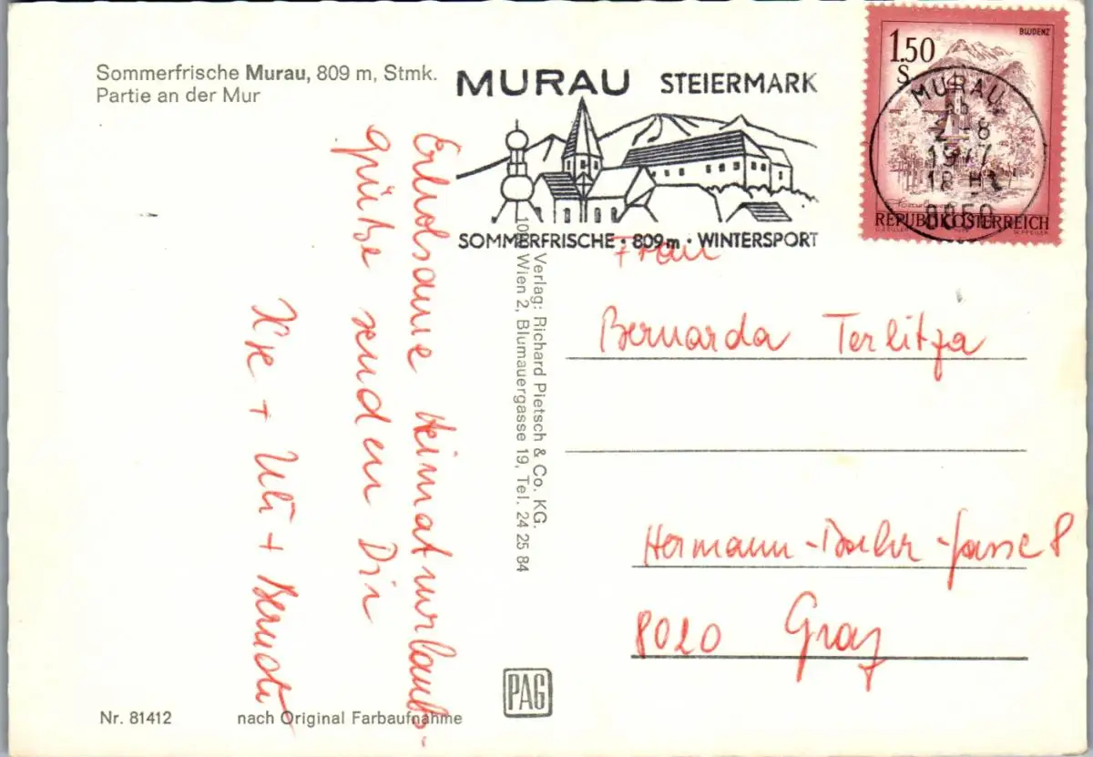 22427 - Steiermark - Murau , Partie an der Mur - gelaufen 1977