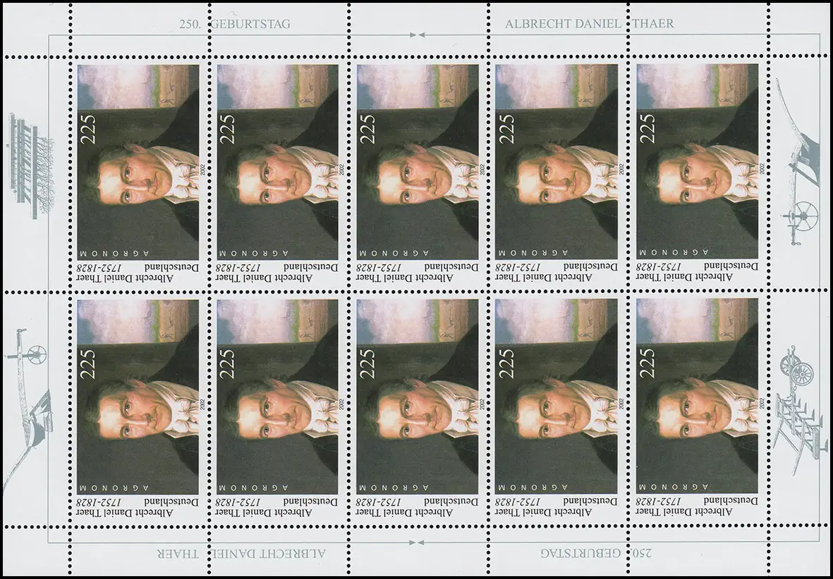2255I Zehnerbogen Thaer Type I, Rasterung 45 / 45 Grad ** postfrisch