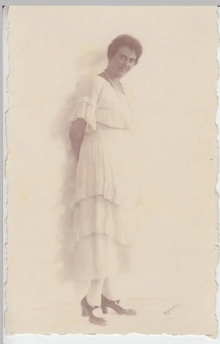 - (22702) Künstler Ansichtskarte, postcard, PPC - junge Frau im weißen Kleid, Hanna 1921