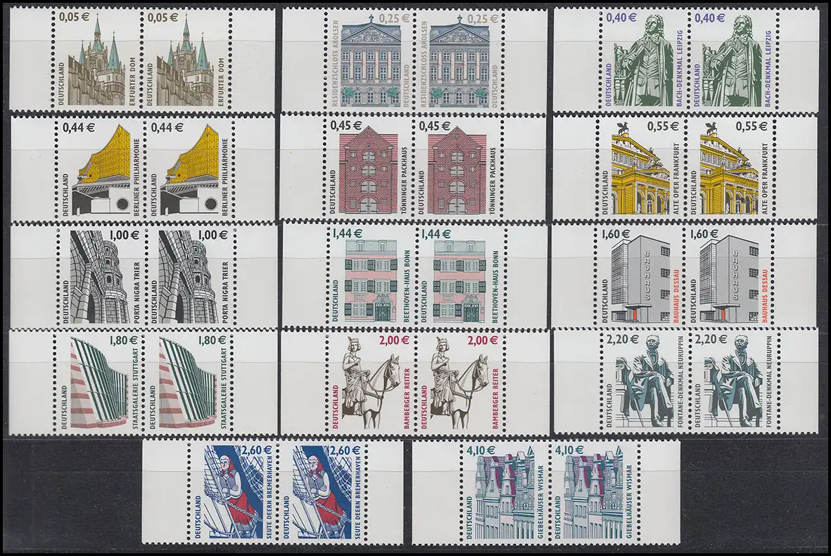 2298 ff SWK 14 Werte mit Euro-Währung komplett, waagerechte Paare **