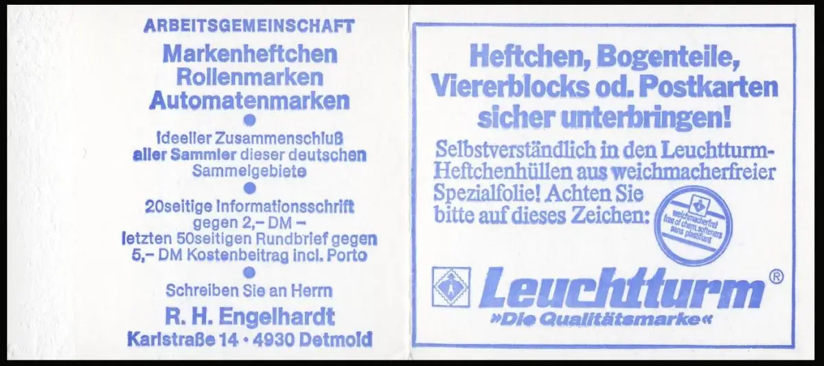 2 Adressen, Markenheftchen/LEUCHTTURM; Variante a: i von Postwertzeichen steht links vom ersten l von Versandstellen