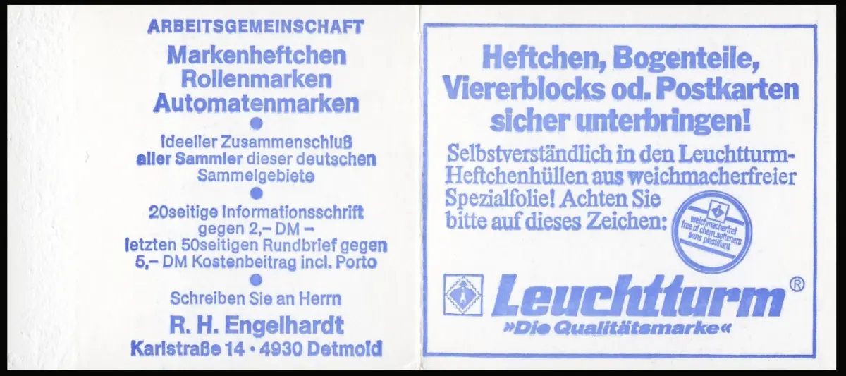 2 Adressen, Markenheftchen/LEUCHTTURM; PLF III: Strich im Dach, Feld 3