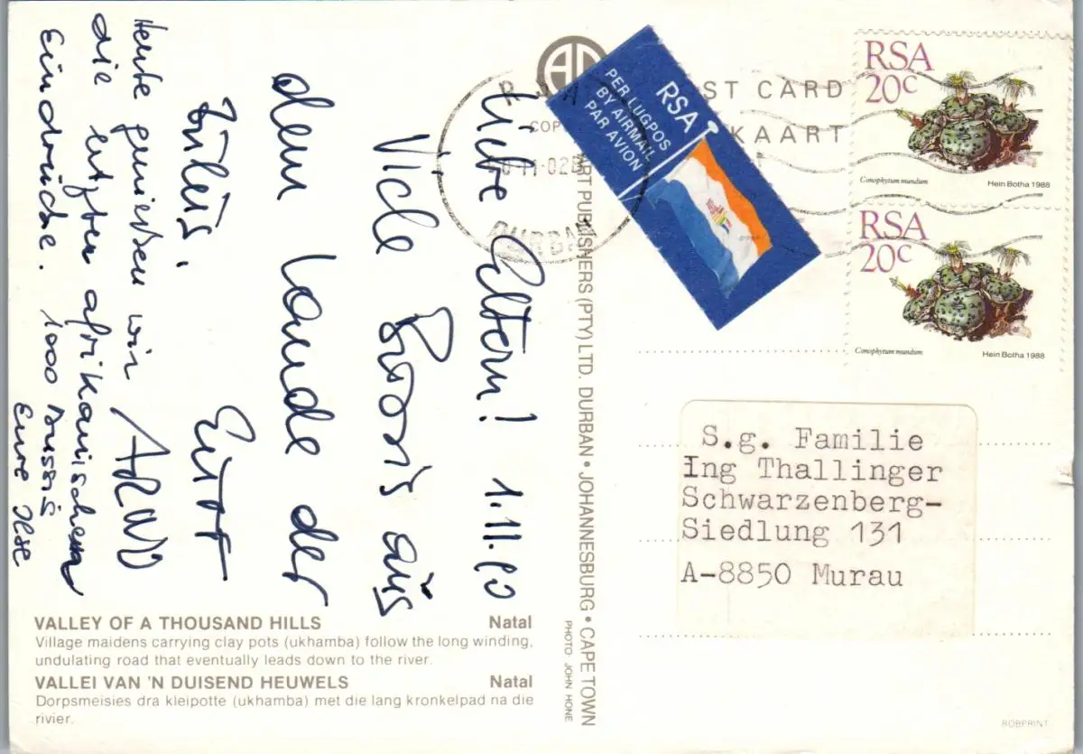 23059 - Südafrika - Valley of a thousand Hills , Natal - gelaufen 1990