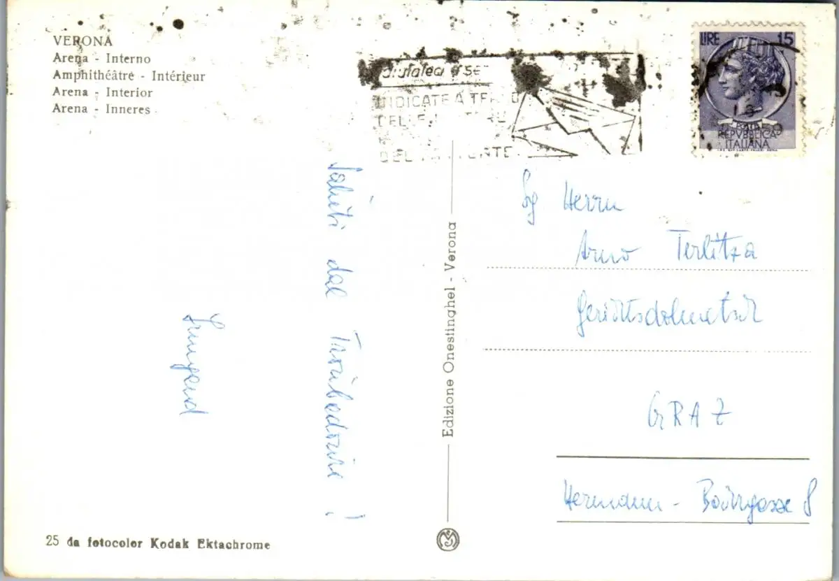 23329 - Italien - Verona , Arena interno - gelaufen 1959