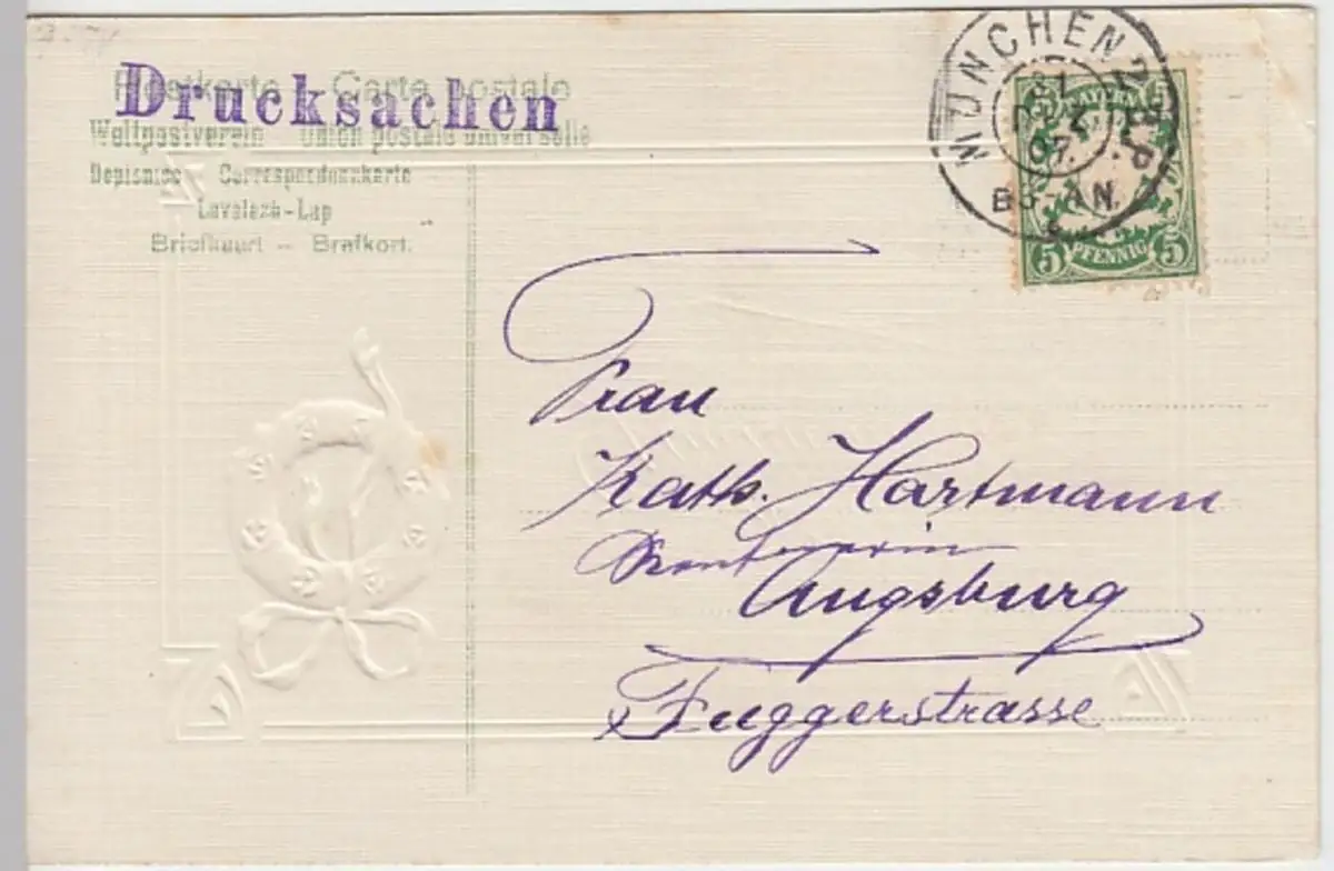 - (23848) Ansichtskarte, postcard, PPC - Neujahr, Prägekarte, Kranz 1907