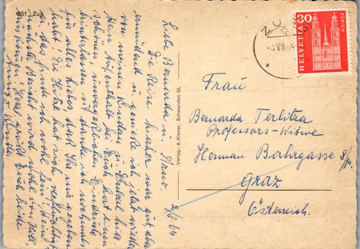 23953 - Schweiz - Zug , Straßenpartie - gelaufen 1964