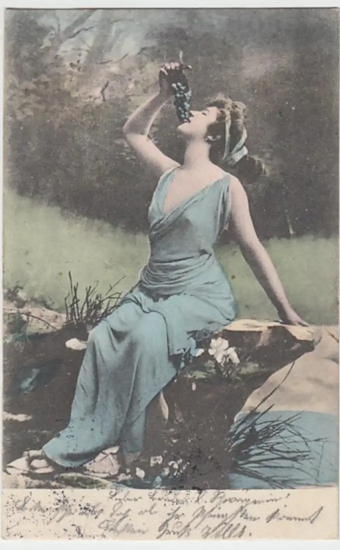 - (24223) Ansichtskarte, postcard, PPC - Frau mit Weintraube 1901