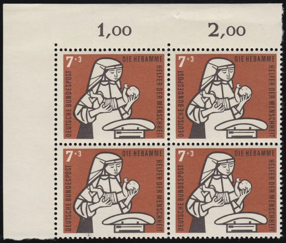 243 Kinderpflege 7+3 Pf Hebamme ** Eck-Vbl o.l. Zähnung 0-1