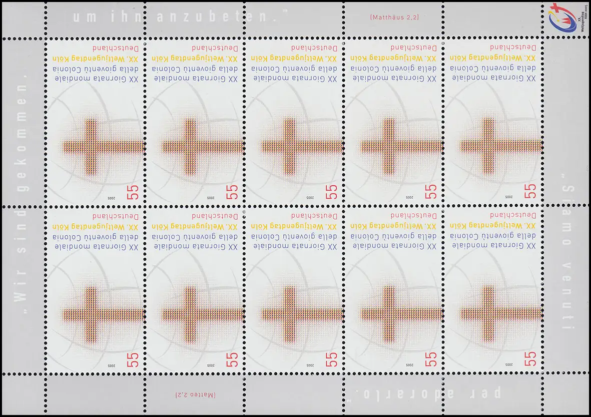 2469 Weltjugendtag Köln - 10er-Bogen, ** postfrisch