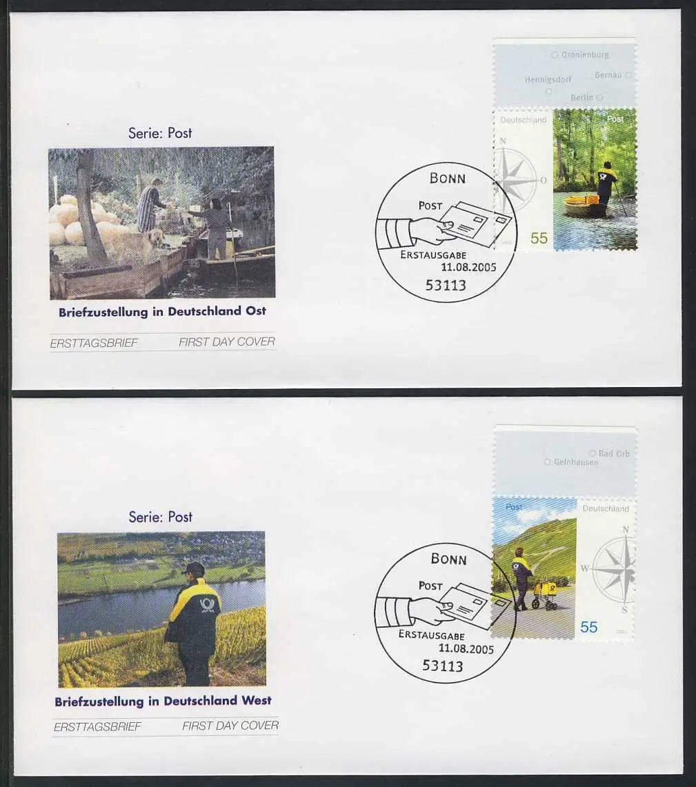2481-2482 Post Briefzustellung in Ost und West 2005 auf 2 FDC ESSt Bonn
