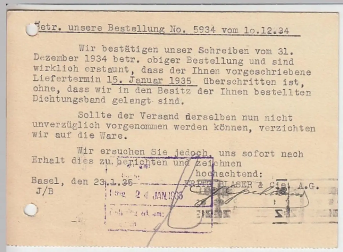 - (24838) Postkarte Schweiz 1935 v. Blaser Eisenwaren Basel