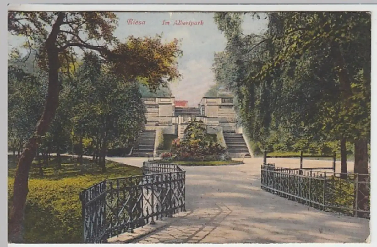- (24904) Ansichtskarte, postcard, PPC - Riesa, Freitreppe im Albertpark 1926