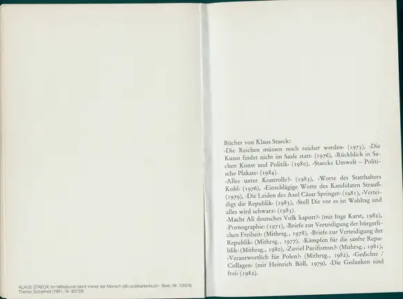 25 Ak in einem informativen dtv Postkartenbuch von Klaus Staeck, handsigniert
