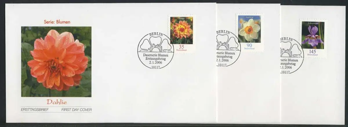 2505-2507 Blumen 0,35/0,90/1,45 Euro mit Nummer FDC Berlin