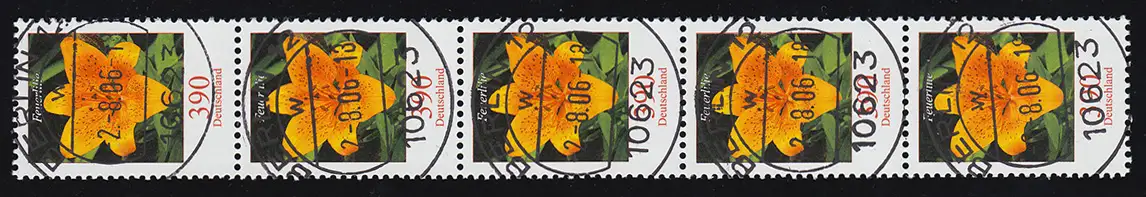 2534 Feuerlilie als 5er-Streifen mit VS-O BERLIN 2.8.06 mit Nummer 195