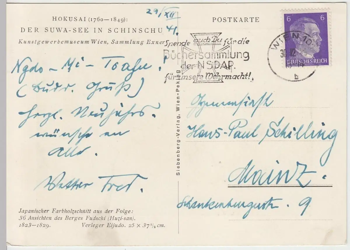 - (25370) Ansichtskarte, postcard, PPC - Gemälde v. Hokusai: Der Suwa-See 1941