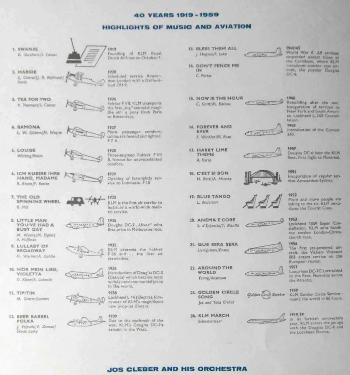 25cm LP Music Captain Please... 1919 - 1959 40th Anniversary of KLM Airlines