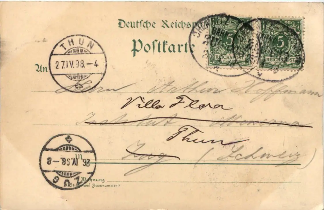 Danke. Alles Bestens. Können Sie mir allenfalls mitteilen, aus welchem Jahr die Postkarte stammt? Besten Dank.