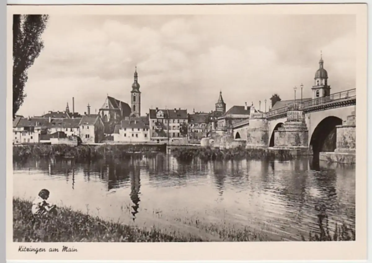 - (26105) Foto Ansichtskarte, postcard, PPC - Kitzingen, alte Mainbrücke, Stadtansicht