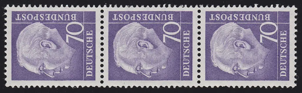 263Z Heuss II 70 Pf WZ Z, 3er-Streifen + Nr. **