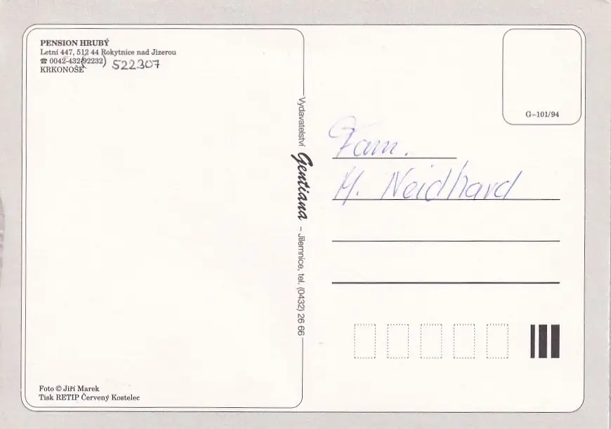 2757 - Tschechien - Krkonose , Kokonin , Pension Hruby , Rokytnice nad Jizerou - nicht gelaufen
