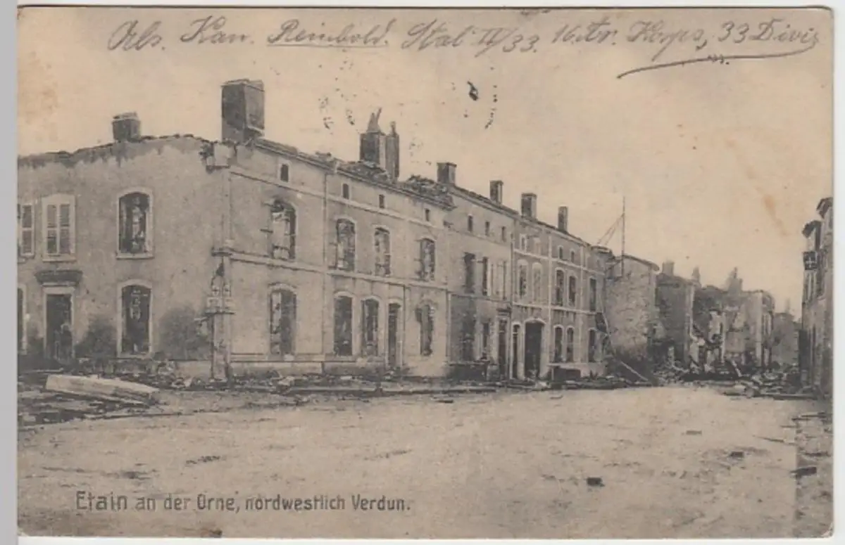 - (27739) Ansichtskarte, postcard, PPC - 1. WK Etain, Lothringen, zerstörter Ort, Feldpost 1915