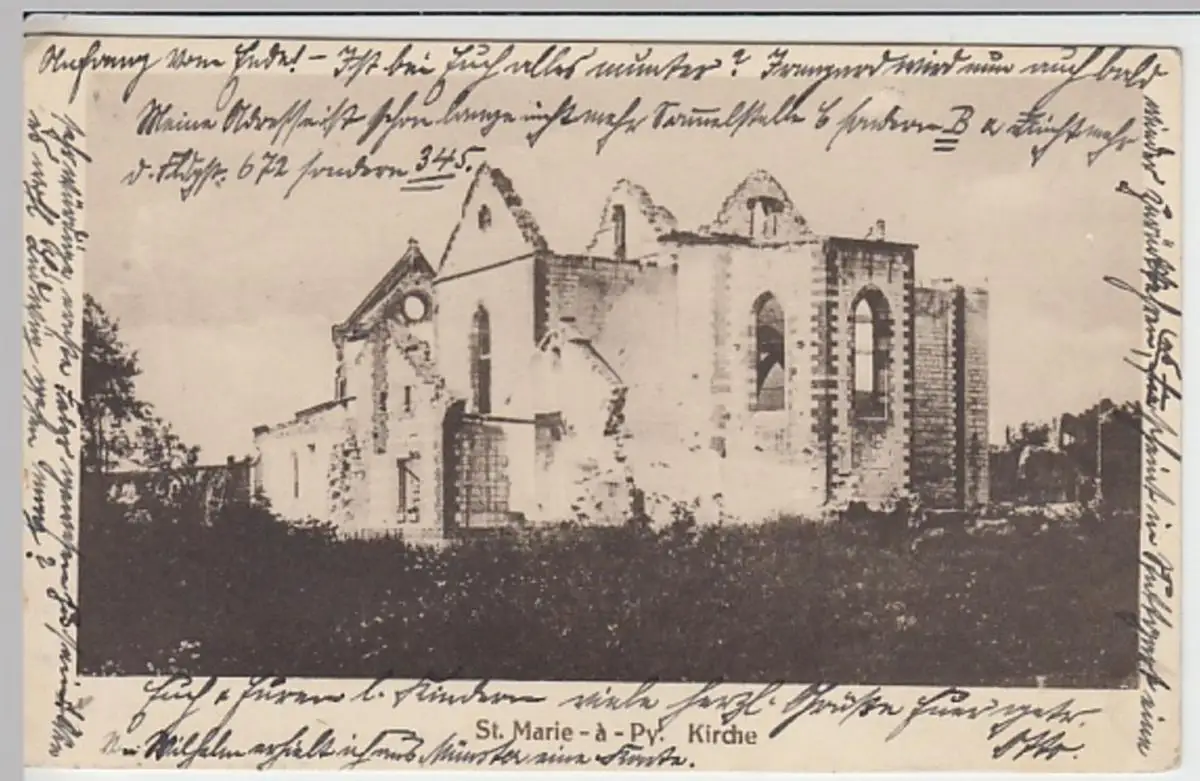 - (27783) Ansichtskarte, postcard, PPC - Sainte-Marie-a-Py, zerstörte Kirche, Feldpost 1917
