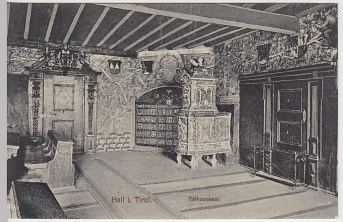 (28148) AK Hall in Tirol, Rathaussaal, vor 1945
