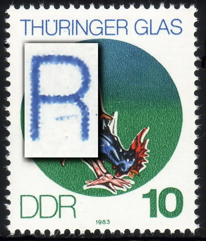2835 Thüringer Glas 10 Pf: Strich unten im ersten R von THÜRINGER, Feld 2, **
