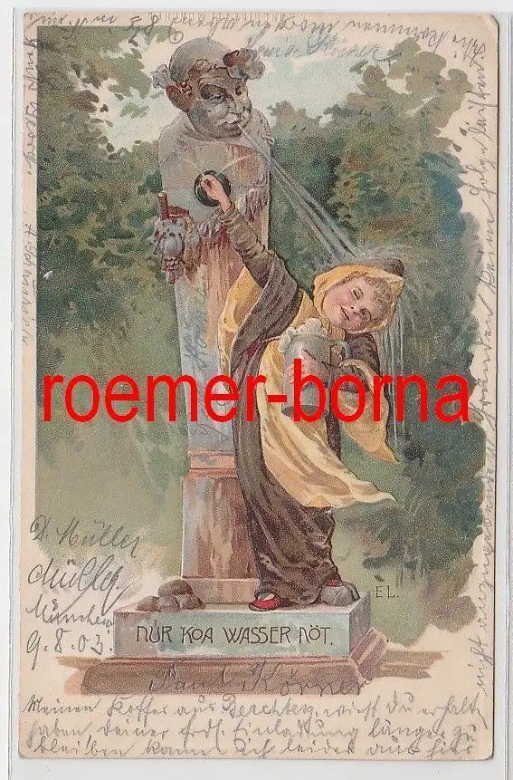 28407 Humor Präge Ak Münchner Kindl "Nur koa Wasser nöt" 1903