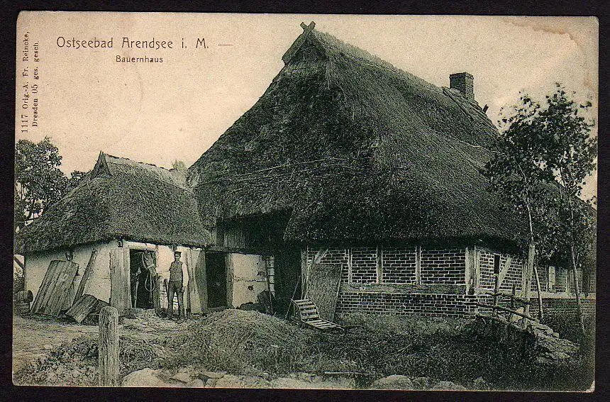 29067 AK Ostseebad Arendsee i. M. Bauernhaus Reetdach 1905