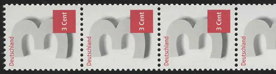 2964 Drei Cent 5er-Streifen UNGERADE Nr. Typ I große Ziffern, **