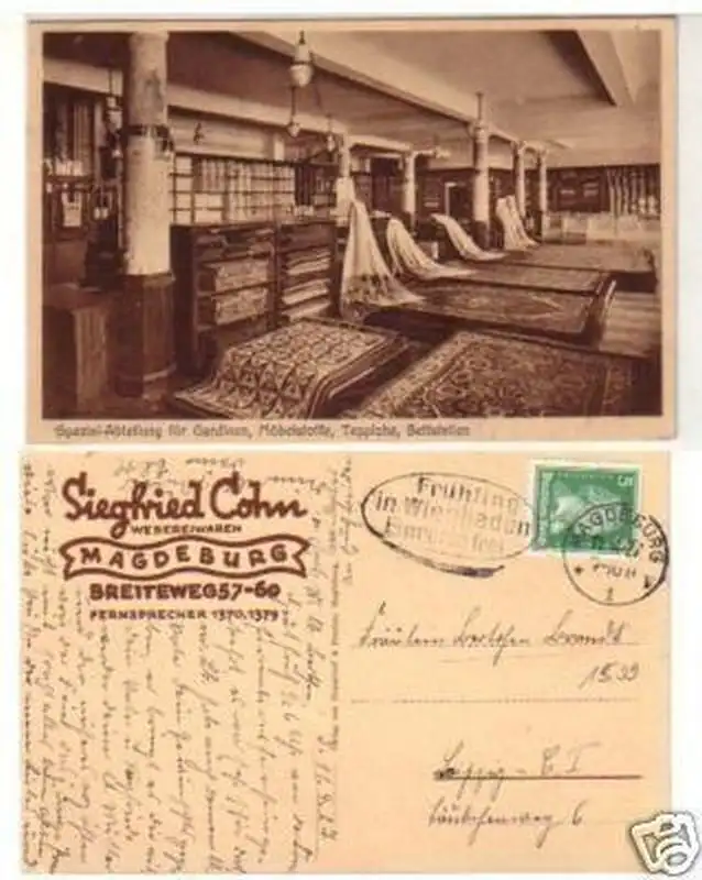 Spezial Abteilung für Gardinen, Möbelstoffe, Teppiche, Bettstellen, gelaufen, gute Erhaltung, siehe Bild