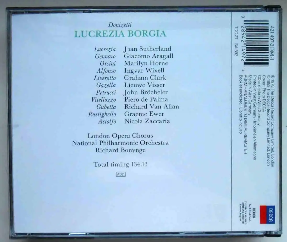 2CD Box Donizetti: Lucrezia Borgia - Joan Sutherland - (Decca) 1999