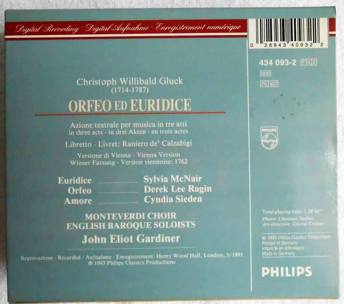 2CD Box Gluck: Orfeo ed Euridice John Eliot Gardiner (Philips) 1993
