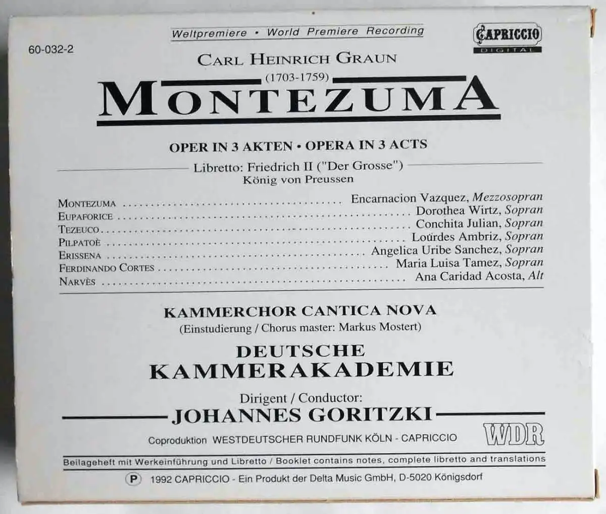 2CD Box Graun: Montezuma (Capriccio) WDR 1992