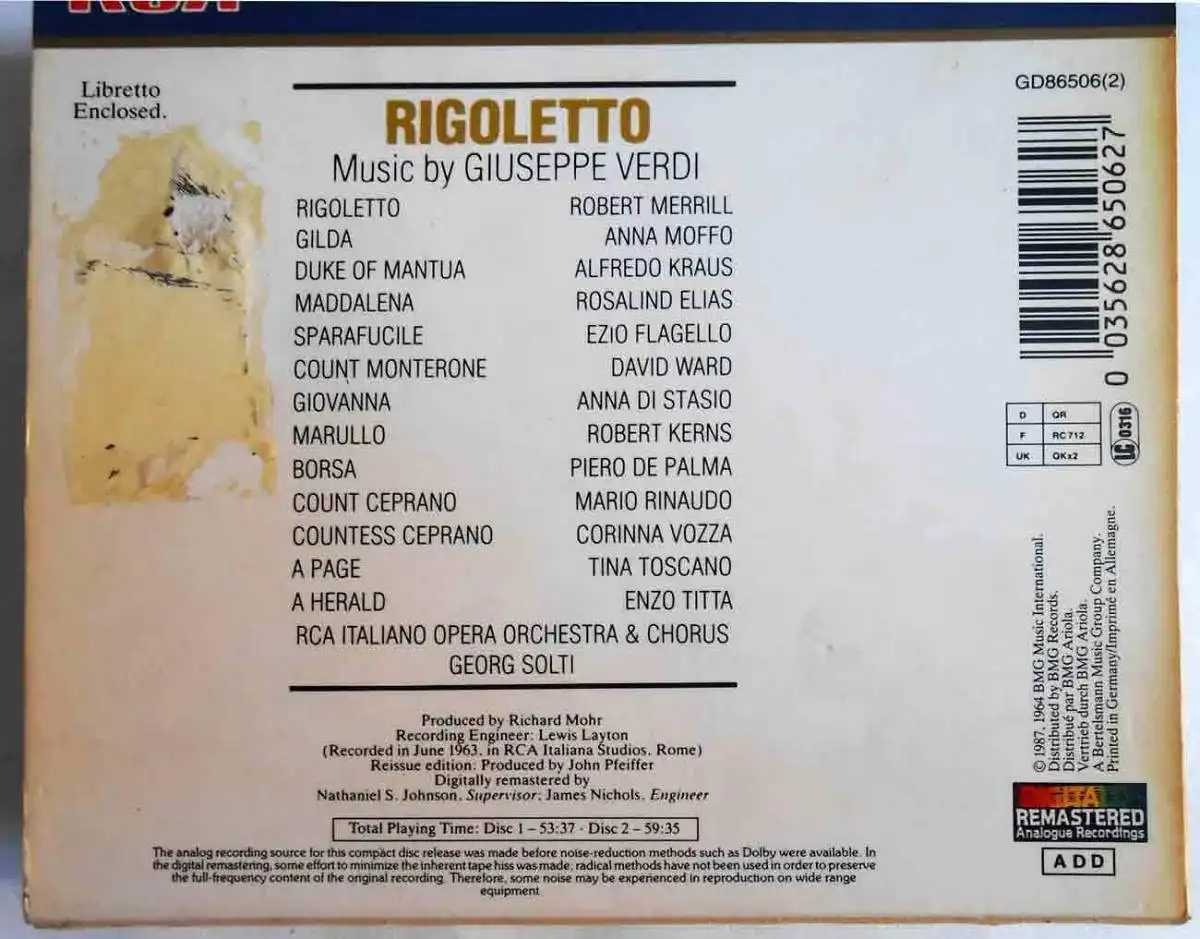 2CD Box, RCA Records, 1987, Georg Solti, Anna Moffo, Robert Merrill usw...; Box angegilbt und auf Rückseite Preisabriss