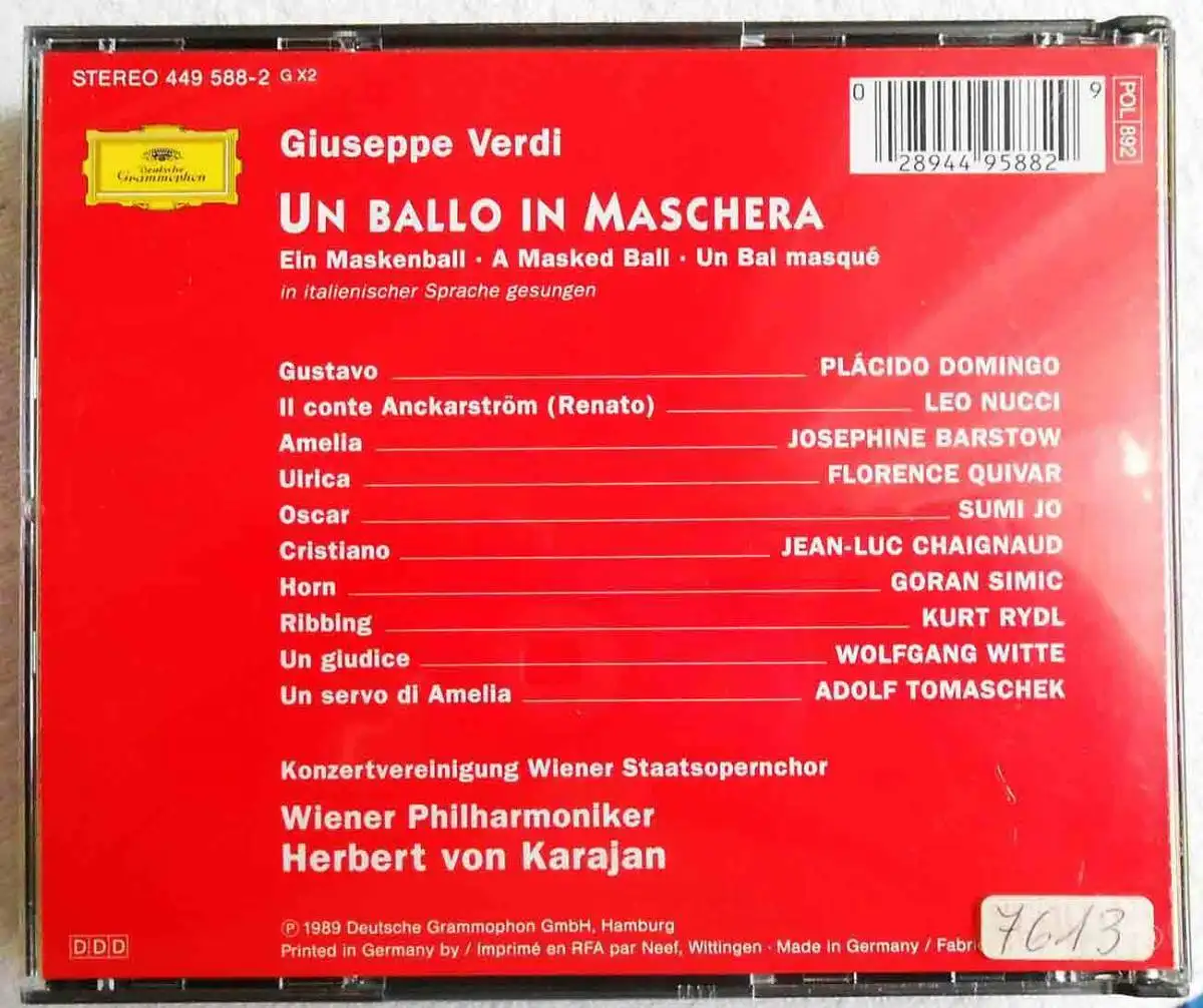 2CD Box Verdi: Un Ballo In Maschera Karajan Domingo (DGG) 1989