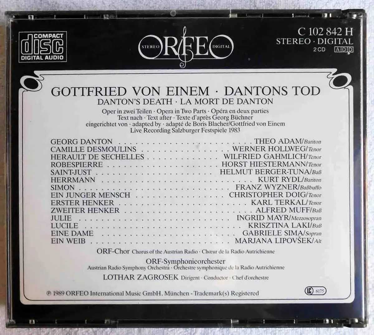 2CD Box Von Einem: Dantons Tod Salzburger Festspiele (Orfeo) 1989